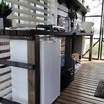 Поужинать можно на мини-кухне оборудованной холодильником, плитой и кухонной утварью.